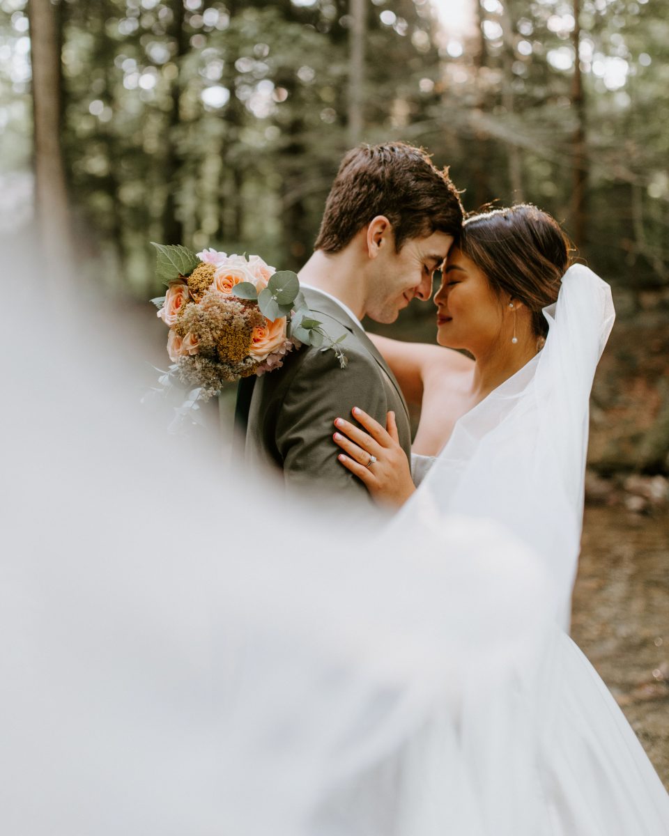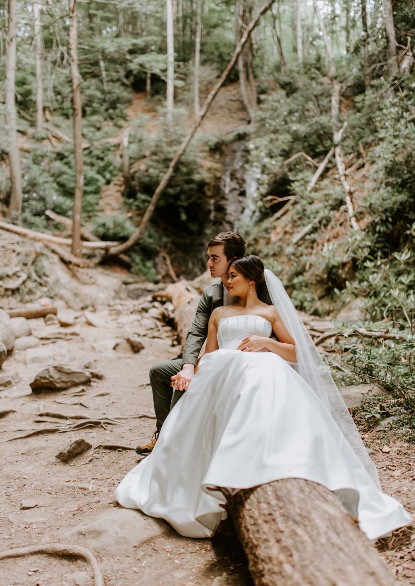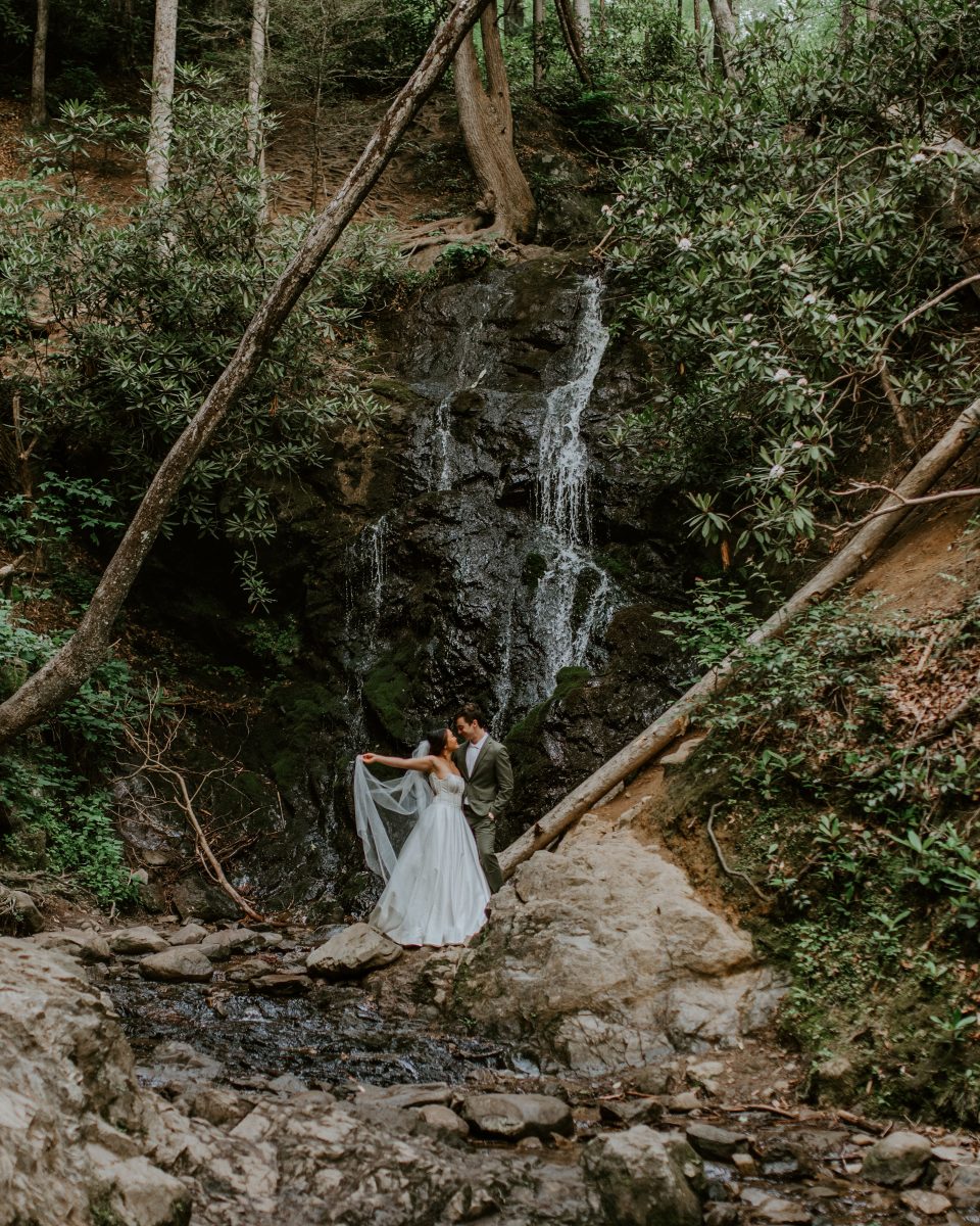 Justin + Tram eloped in The Great Smoky Mountains National Park. Their elopement was stress free, simple and full of fun. We met early at sunrise. The two said their vows while the sun reached the tops of the mountains. As a Smoky Mountain Elopement Photographer, I helped to guide this couple on an ideal spot for their elopement. We had beautiful mountain, waterfall and river scenery, as well.