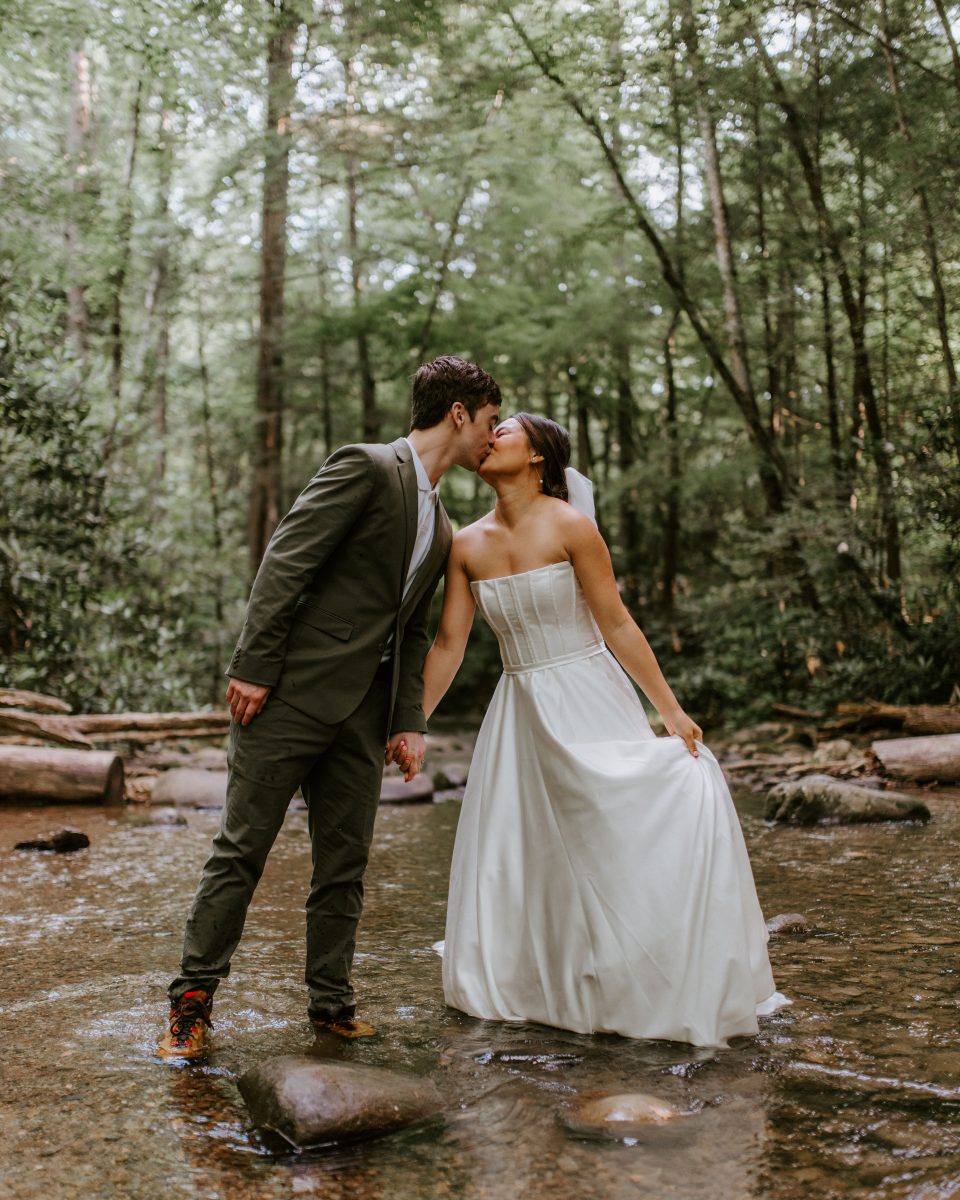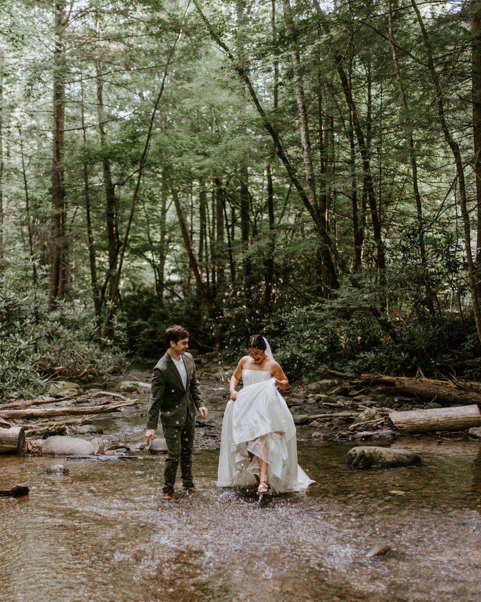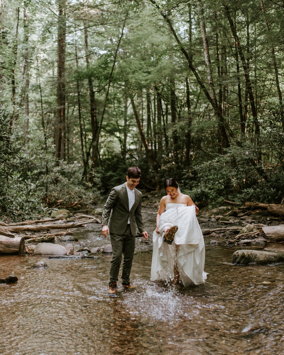 At the end of the bride and groom portraits by myself, a Smoky Mountain Elopement Photographer, the couple decided to get into the river. We seriously had so much fun just exploring and these two really let their love shine.